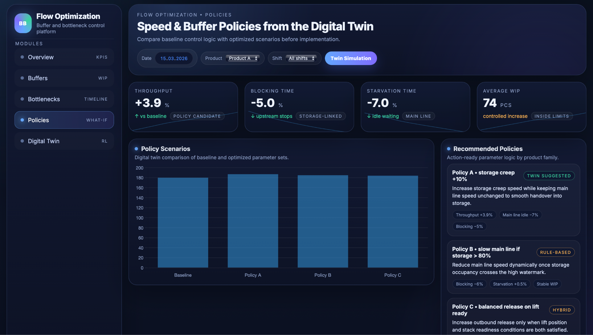 Better control of buffers and speeds also makes the material flow more stable. When the line runs with fewer sudden stops, overloads, or empty sections, operators do not need to constantly adjust settings based on intuition. Clear rules, better visibility, and validated policies reduce the need for manual intervention and help shifts run more smoothly. As a result, operator stress is lower, the process feels more predictable, and the risk of mistakes caused by time pressure is reduced.